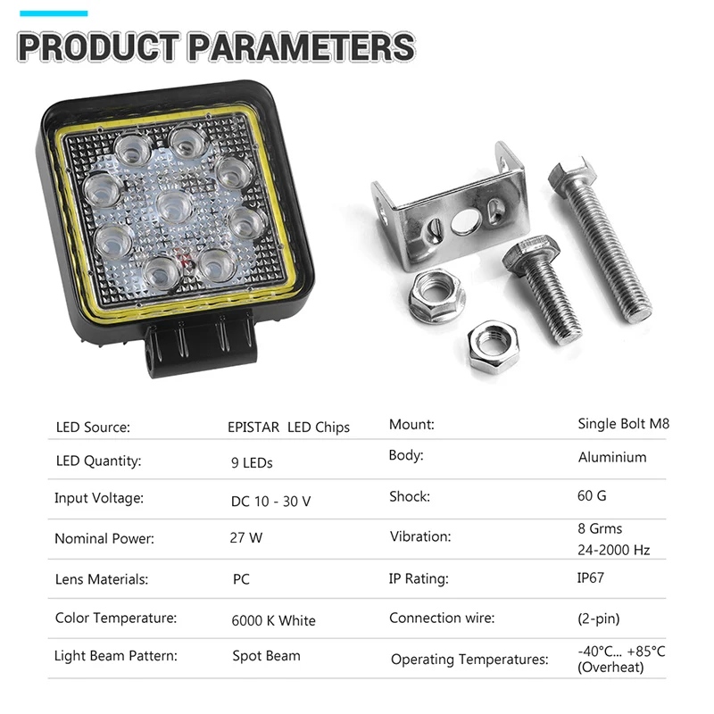 The best product you are looking for is "9 LED Auto LED Work Lamp 4D 27W 4inch Square Spotlight LED work light bar Spot Beam For Truck Offroad 4X4 4WD Car light 12V 24V". This product is available and ready to be purchased. Get attractive discounts every time you shop in our store (aliexpress.com). Aliexpress also provides a coupon of $ 3 for the first buyer to shop there. don't forget to bookmark our store page so you can go shopping again anytime..